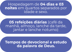 Suítes para 8 a 10 pessoas, sempre com monitor responsável.