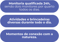 Selecionamos e treinamos rigorosamente nossos monitores, com média de 1 profissional para cada 7 acampantes. Também contamos com coordenação e staff fixos durante toda a temporada.