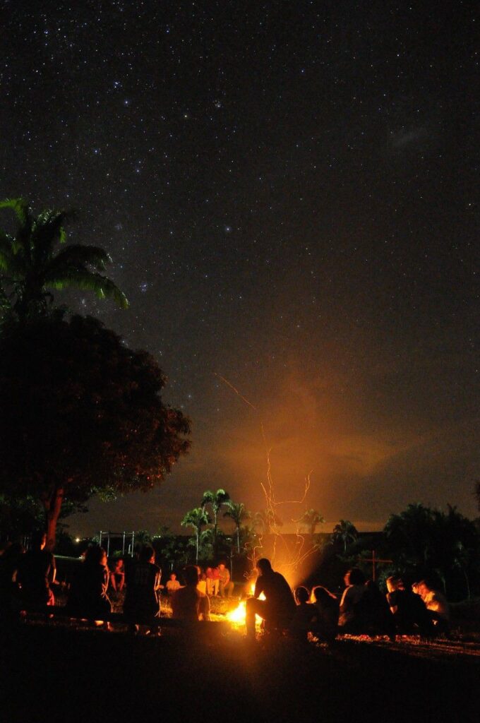 Quando o sol se põe, a diversão continua com jogos noturnos cheios de emoção e oficinas criativas de arte, música, dança e teatro.